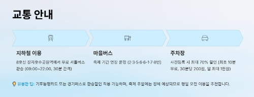 축제 주말에는 정체 예상되니 평일 오전 이용을 추천해요!