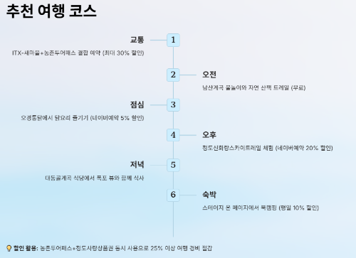 💬 가성비 최고의 청도 여행을 위해서는 사전 예약과 할인 혜택 중복 활용이 핵심이에요!