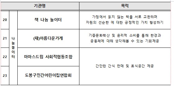 마지막으로, 마마스드림 사회적협동조합 도봉구민간어린이집연합회는 간단한 간식을 판매하고 휴식 공간을 제공하는 역할을 하며, 이를 통해 사람들에게 여유와 소통의 기회를 제공합니다.