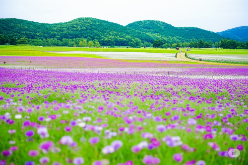 태신목장 일대의 수레국화 꽃밭은 5월 말부터 6월 초까지 절정기에 접어들며, 들판 전체가 보랏빛의 수레국화로 물들어 장관을 이룹니다. 넓게 펼쳐진 꽃밭 곳곳에 설치된 포토존은 인스타그램 명소로도 각광받아, 아름다운 SNS 인증샷을 남기기에 최적의 장소입니다.
