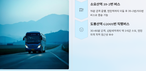 소요산역에서 39-2번 버스를 이용하는 방법도 있어요! 이 버스는 15분 간격으로 운행하며 연천역까지 이동 후, 35-2번 또는 100번 버스로 환승하여 중면사무소까지 갈 수 있답니다.