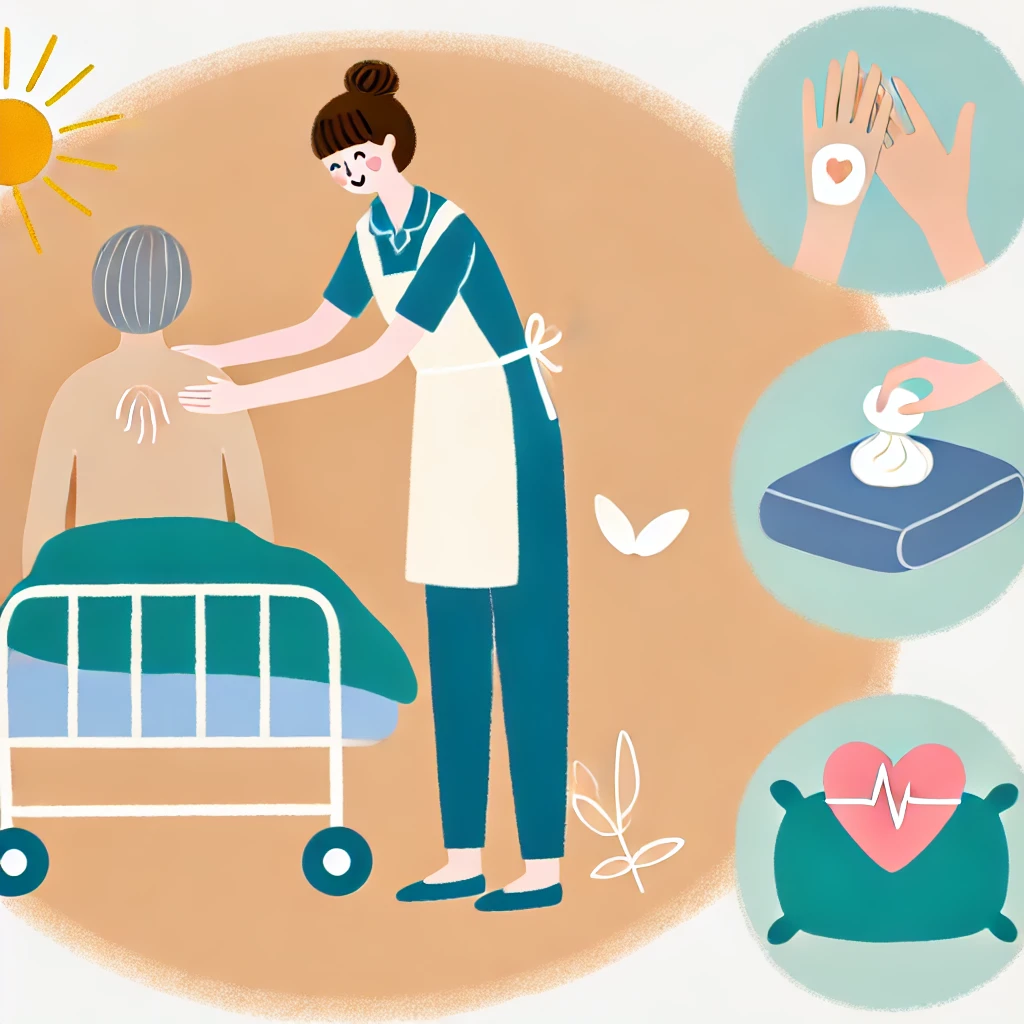 - 피부 상태 체크 🔍: 욕창 발생이 쉬운 부위를 매일 확인합니다. 작은 붉은 자국이 보인다면 욕창의 초기 증상일 수 있으므로 바로 대처하는 것이 중요합니다.