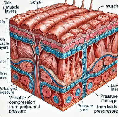 - 지속적인 압력: 같은 자세로 오랫동안 유지되면 혈액 순환이 제한되어 피부와 근육 조직이 손상됩니다.