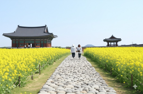 약천사와 주변 야자수, 유채꽃 즐기기 🔹