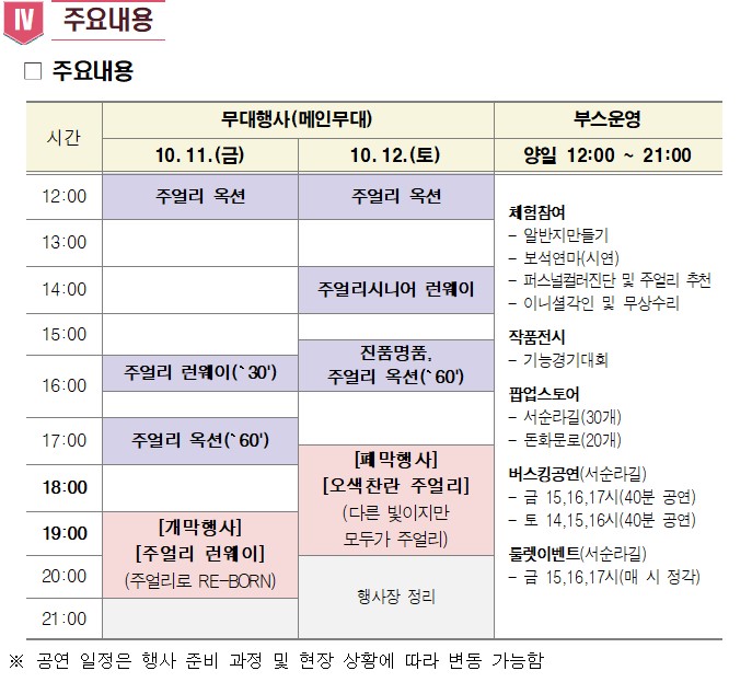 시간표 확인 하시고 원하는 축제에 참여하세요