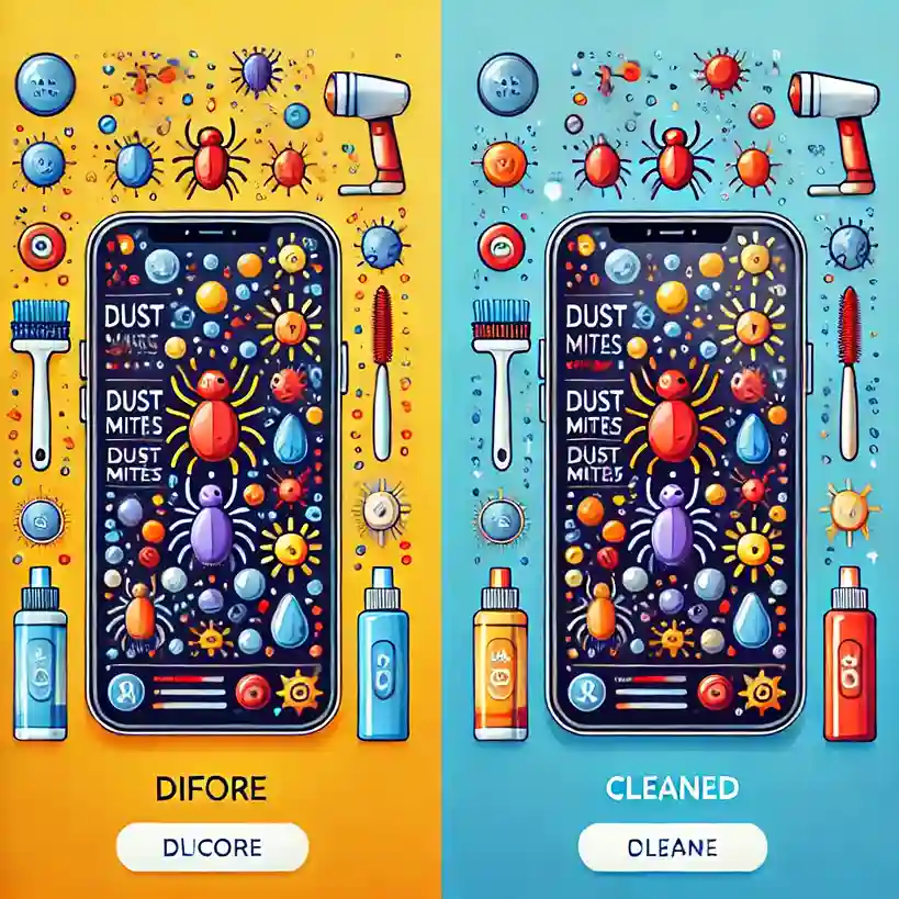 - UV-C 살균기 사용: 스마트폰 내부와 표면의 먼지 진드기를 제거하는 데 효과적입니다.