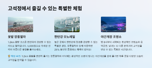 모노레일 운행 간격이 20분이고, 야간공연은 시작 10분 전 도착을 권장해요. 한탄지질공예 체험은 반드시 사전예약이 필요하니 미리 계획하세요!