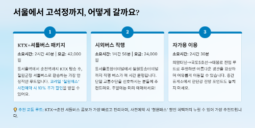 💬 "KTX→춘천 셔틀버스 콤보가 가장 빠르고 편리하며, 사전예약 시 철원패스 10% 추가 할인 가능해 추천됨"