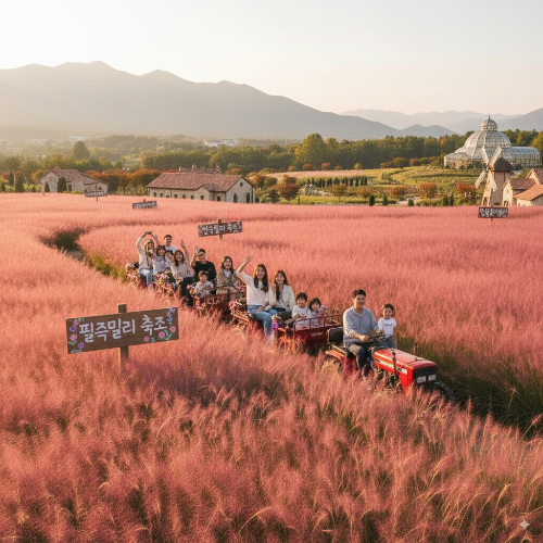 9월 중순부터 11월 말까지 진행되는 핑크뮬리축제는 허브아일랜드의 대표 가을 축제예요! 9월 16일~11월 말까지 진행되며 15,000㎡ 규모의 핑크뮬리 식재단지에서 트랙터 왕복(5,000원)과 핑크썰매보드(6,000원) 체험을 즐길 수 있어요. 스카이허브팜의 핑크뮬리 집단서식지에서 다양한 포토존과 체험활동을 즐길 수 있답니다!