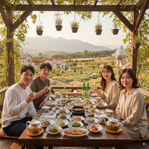소양강숯불닭갈비는 주차장이 완비되어 있고 허브아일랜드 방문 전후 식사 장소로 최적이에요. 한식당 뜰은 계곡이 바로 앞에 있어서 식사 후 자연 감상이 가능하며, 네이버예약 시 할인 혜택을 받을 수 있어요!