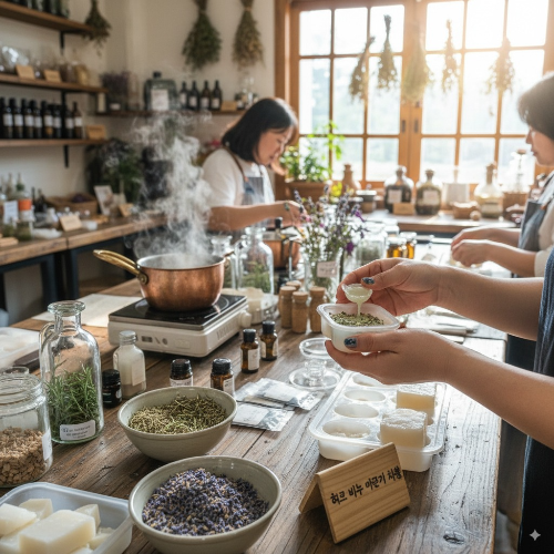 허브 만들기 체험장에서는 허브아일랜드에서 직접 재배한 허브를 이용한 DIY 체험이 가능해요! 천연비누 만들기는 8,000~15,000원이고 허브향초 제작, 허브베개 만들기, 천연화장품 제작 등 다양한 프로그램이 있어요. 평일과 주말 모두 10:00~20:00 운영되며 개인체험은 상시 가능하지만 20인 이상 단체는 사전 예약이 필요해요!